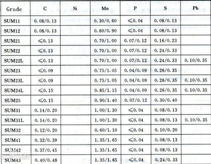 1.日本易切削結構鋼,易切削鋼是易被(車(chē)、銑、拉、刨、鉆等)切削加工的鋼種,又叫自動(dòng)機床加工用鋼,簡(jiǎn)稱(chēng)自動(dòng)鋼。它是為適應機械加工自動(dòng)化和流水作業(yè)線(xiàn)生產(chǎn)而產(chǎn)生的。這類(lèi)鋼可以用較高的切削速度和較深的吃刀量進(jìn)行切削加工,而且由于加入鋼中的易切削元素使切削抗力減小和因加入元素本身的特性及形成的化合物起潤滑刀具刃部的作用,使切屑易斷,減輕了磨損,從而提高了被加工零件的光潔度和精度,提高了刀具壽命和生產(chǎn)效率。